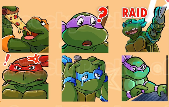 Buyer will receive x6 Ninja Turtles emotes for use on their Twitch / Discord or YouTube account!